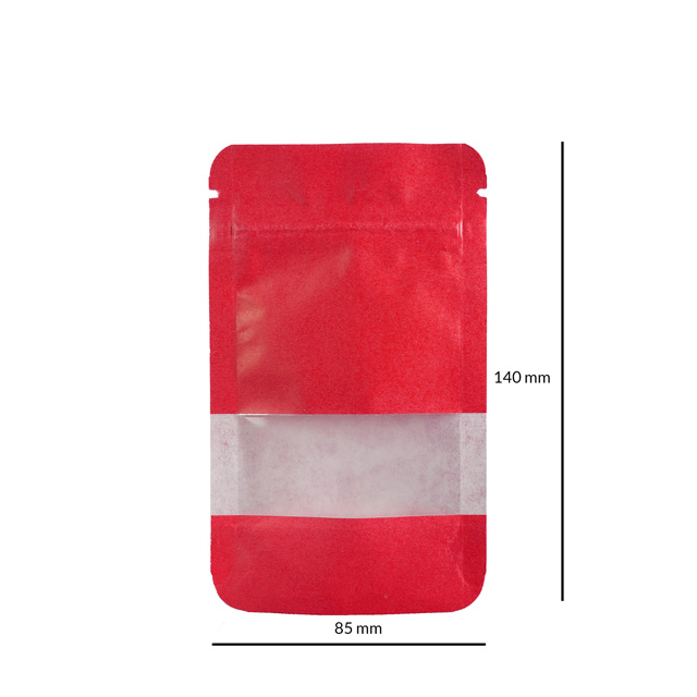 Kraft Paper Bag 140 x 85 mm With Window – Red – 50/Pack