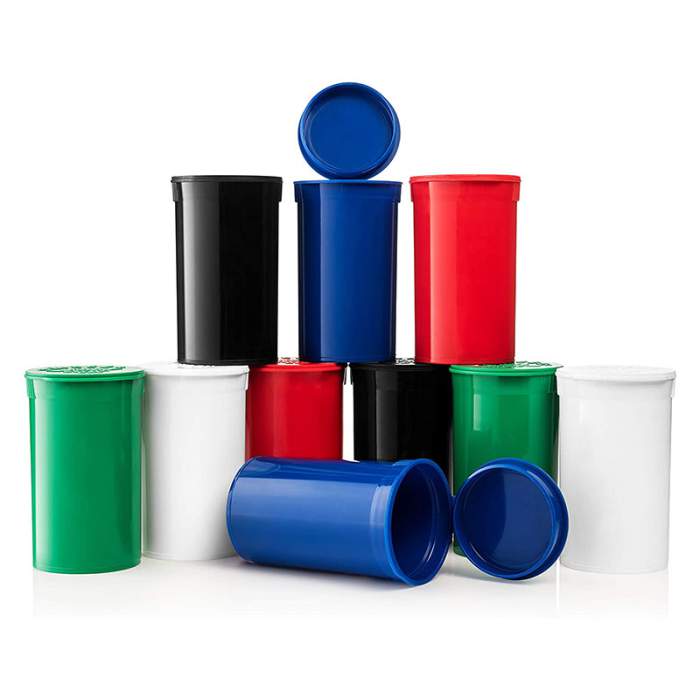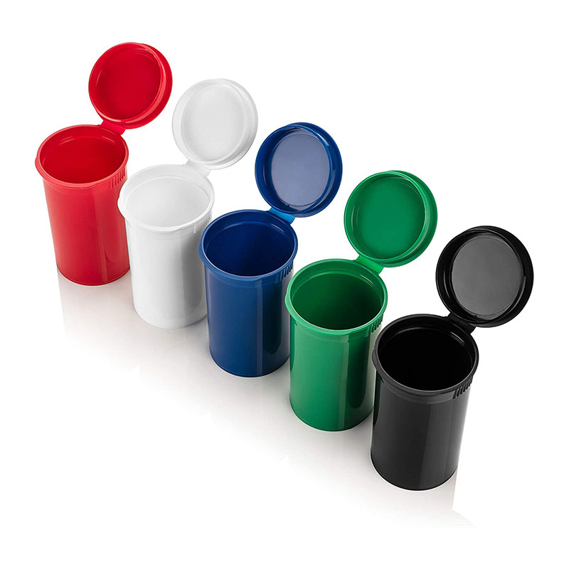Pop vials are an easy, convenient, and safe way to store medical and recreational herbs The vials are child resistant but “pop” open with a simple squeeze on the sides near the top of the vial. The vials have a positive seal for enhanced freshness. All vials are medical grade plastic, BPA-free, and molded of natural gas based polypropylene FDA approved material.