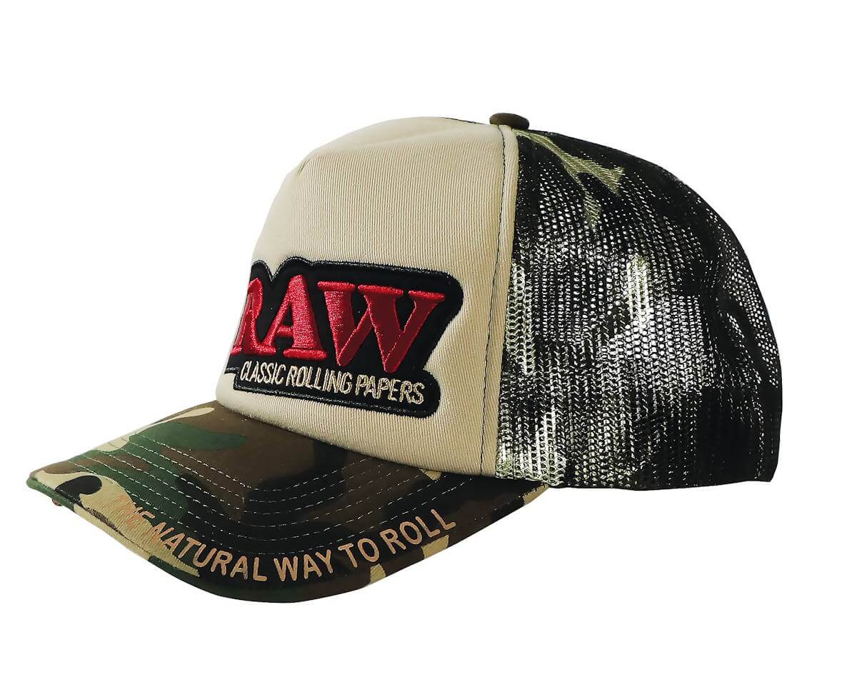 RAW TRUCKER HAT CAMO AND TAN